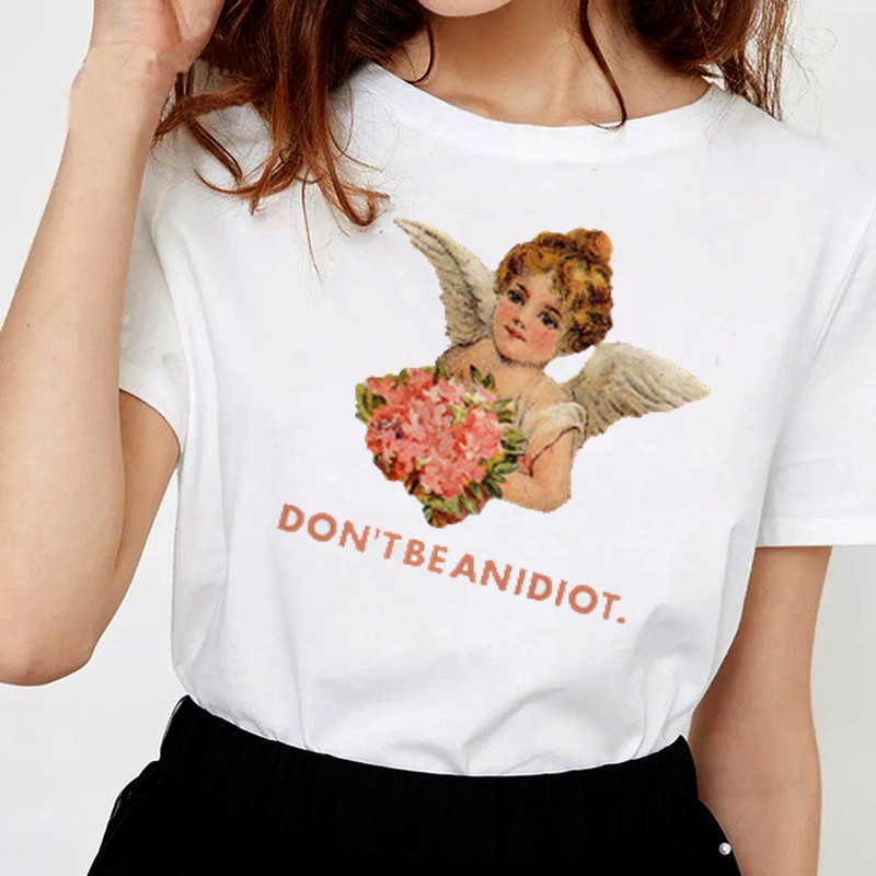 Don T Be An Idiot Vintage Floral Angel Tshirt Ulzzang Tumblr Angel Printed White T Shirt Aesthetic Tumblr Graphic Tops C