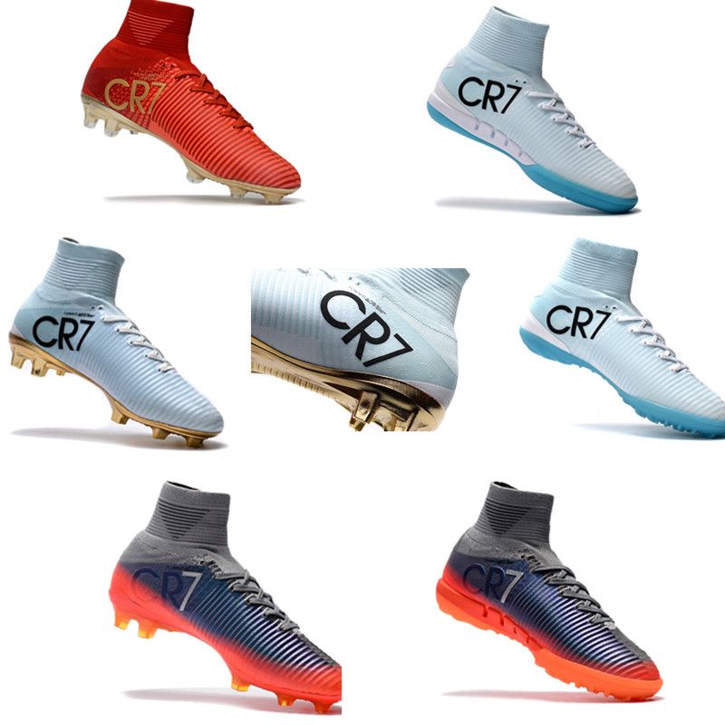 2018 100 Original Soccer Shoes Soccer Cleats Cr7 Cristiano Ronaldo Men Mercurial Superfly Fg Tf High Top Football Boots Many Colors