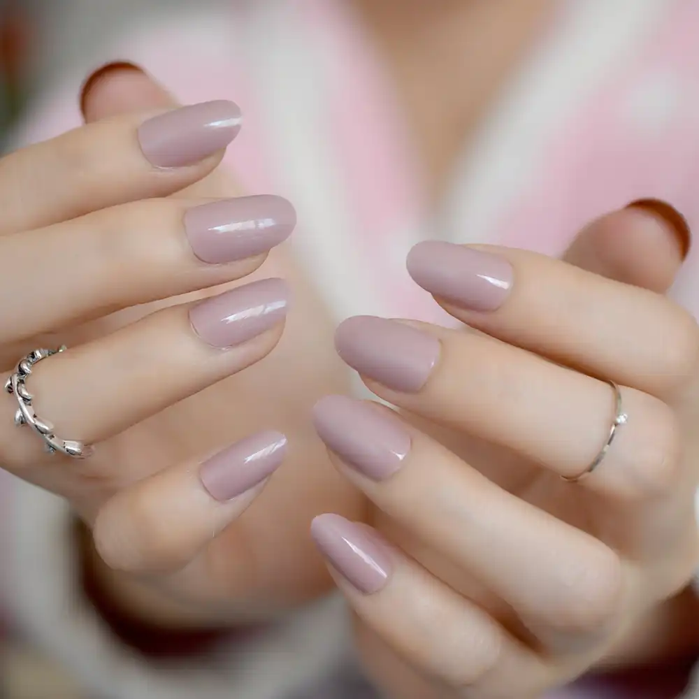 Lovely Short Oval Kuku Palsu Nude Pink Manis Permen Nail Bulat