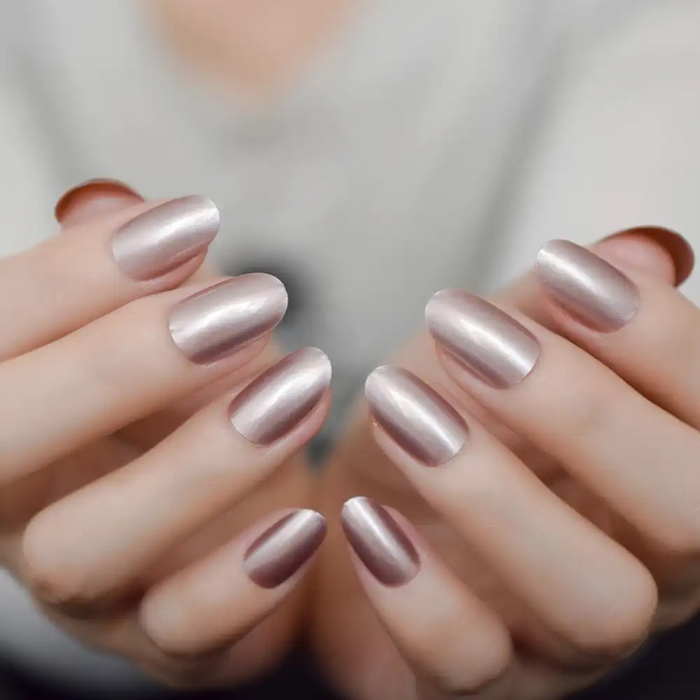 Silk Uv Gel Surface Designed Short Oval Brown Nails Luster Smooth